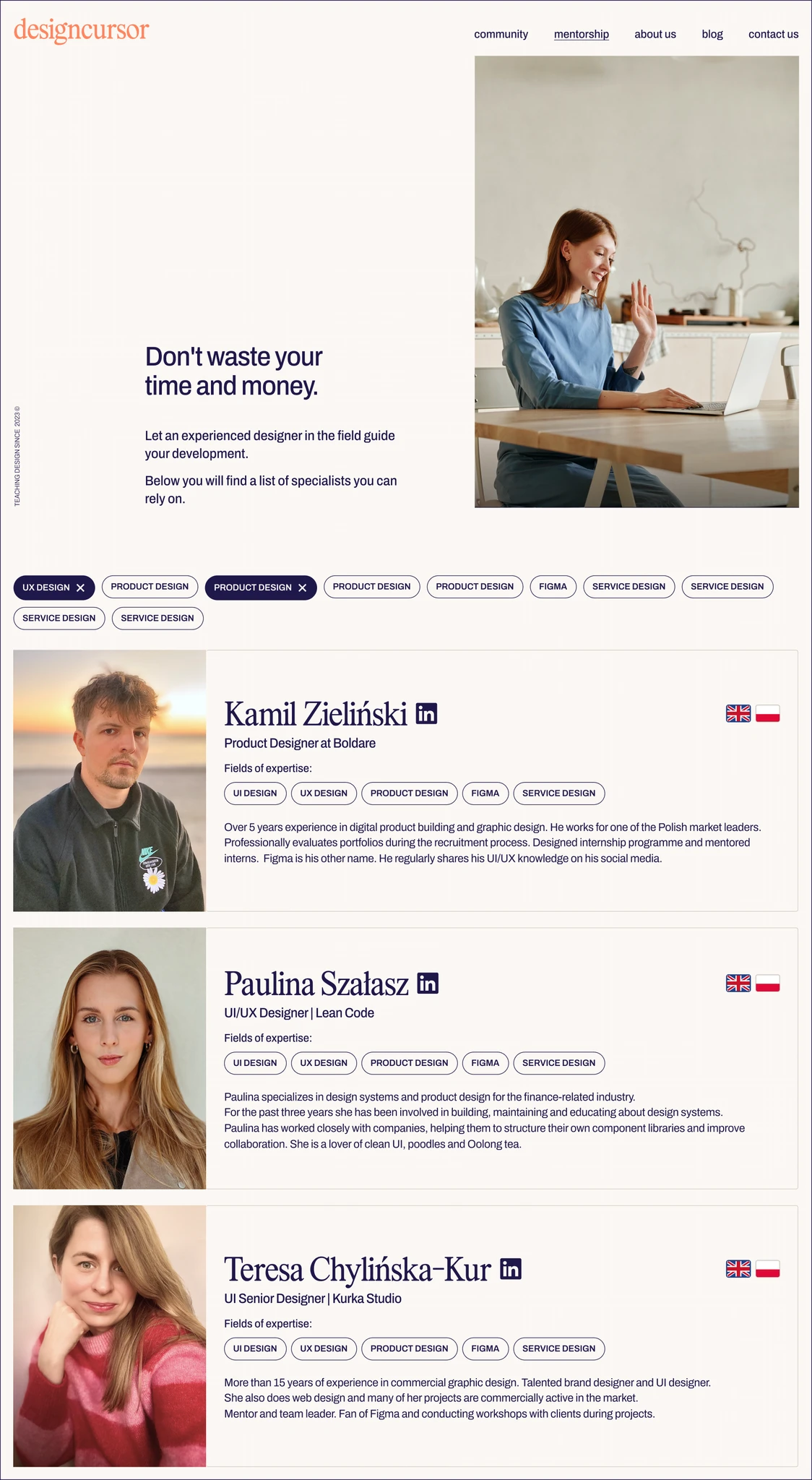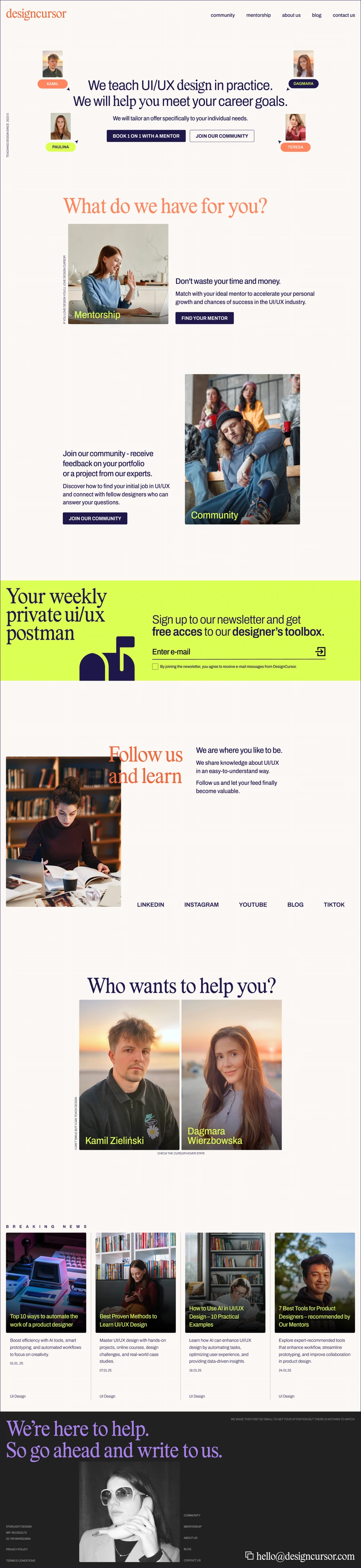 Design Cursor is a space where you can schedule consultations with UI/UX experts. This is my private project, I am the creator of it and I am responsible for every aspect of it, below I want to show you the results of the work on the visual identity and the website.